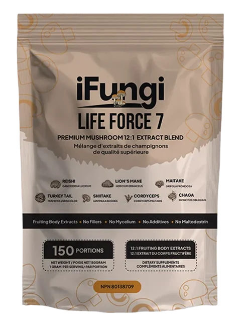 Life Force 7 è una miscela premium di sette funghi con corpo fruttifero sottoposti a doppia estrazione 12:1, studiata per favorire energia costante, concentrazione, equilibrio immunitario e vitalità generale.